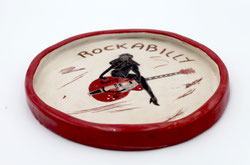 Vaisselle Original et unique avec sa décoration abstraite ,fait main avec la technique des terres vernissées.