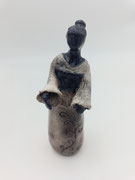 Magnifique sculpture Art figuratif , statue en céramique artisanale représentant la porteuse d'eau. Sculpture réalisée en céramique émail couleur caramel et marron, unique en son genre